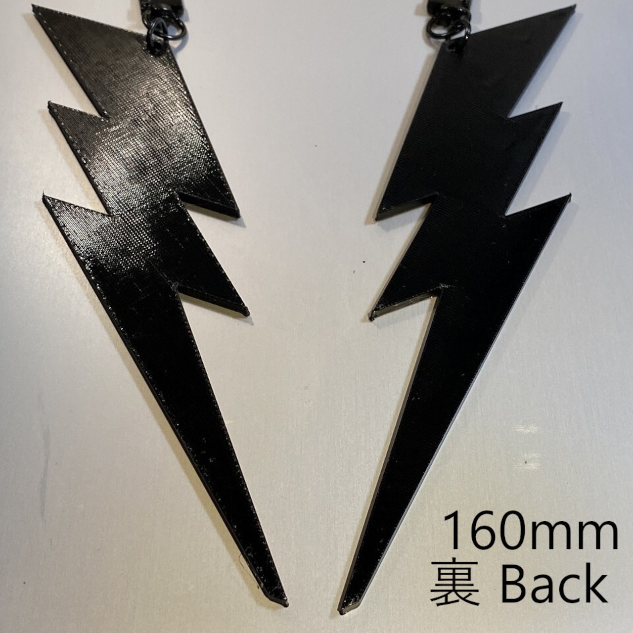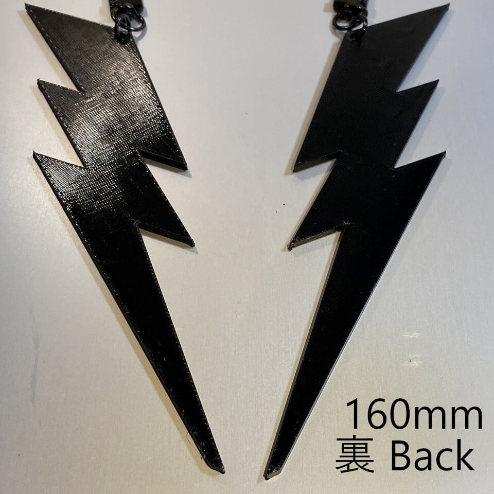 稲妻型のシンプルなキーホルダーです。表面はカーボンパターンを採用、裏面は3Dプリンター独特とパターンになっています。(画像2,3枚目参照)